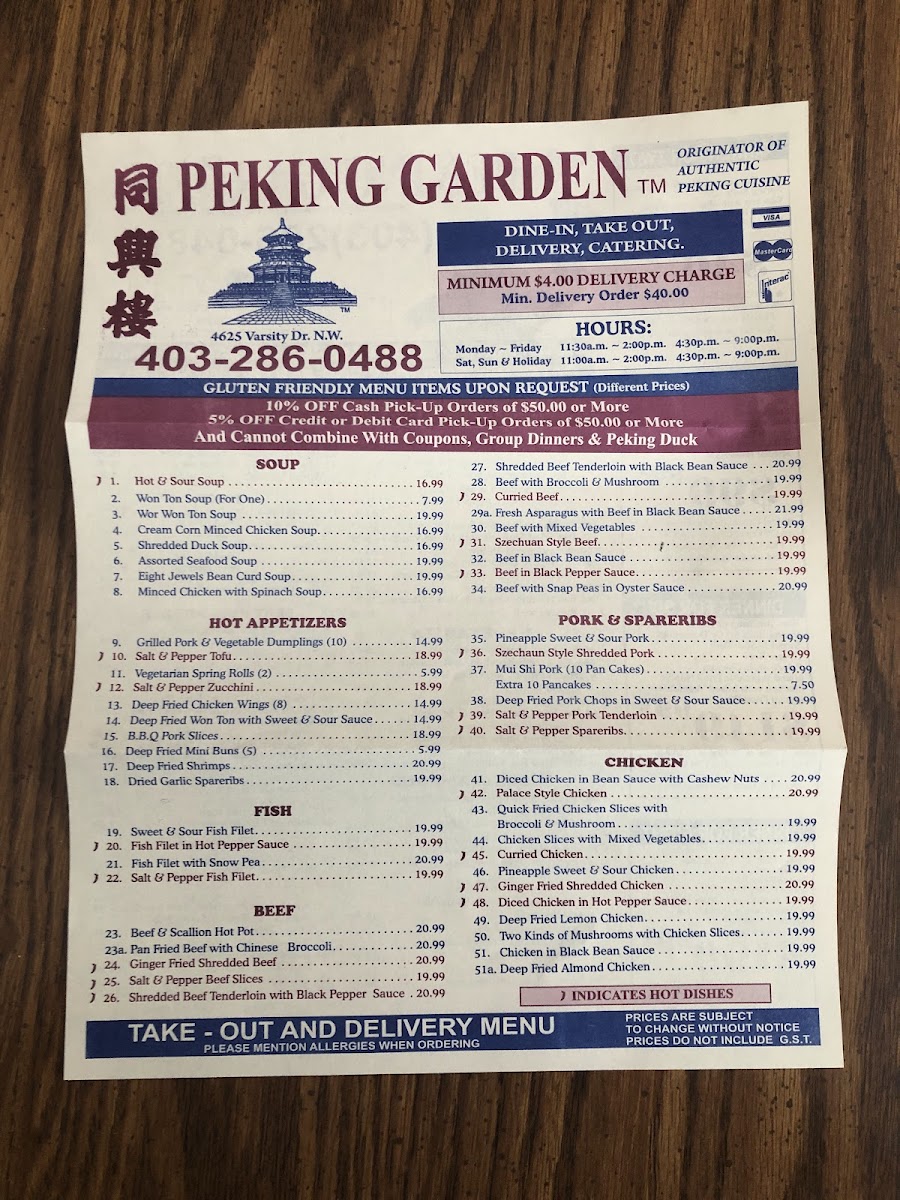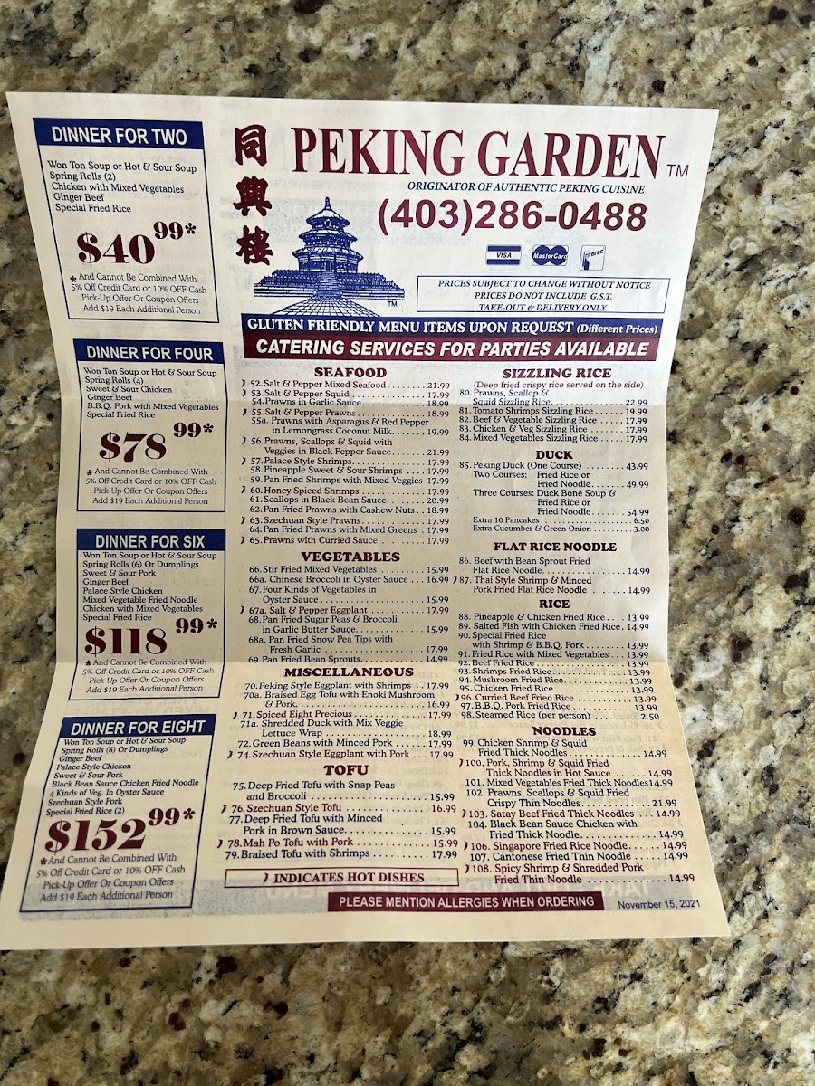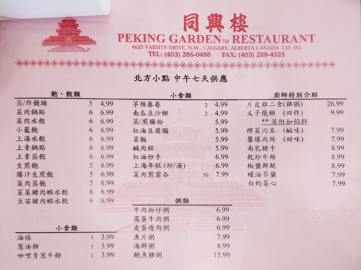 Peking Garden Calgary Menu